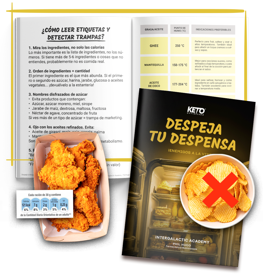 ¿Un producto sin azúcar es realmente “keto”? ¿El eritritol es seguro? ¿Y qué pasa con los polialcoholes, los espesantes, las gomas, las proteínas vegetales o el maltitol? En esta lección te enseñamos, con rigor y sentido común, cómo leer etiquetas como un verdadero estratega. Descubrirás qué ingredientes evitar, cómo identificar los trampas más comunes del marketing “fit”.